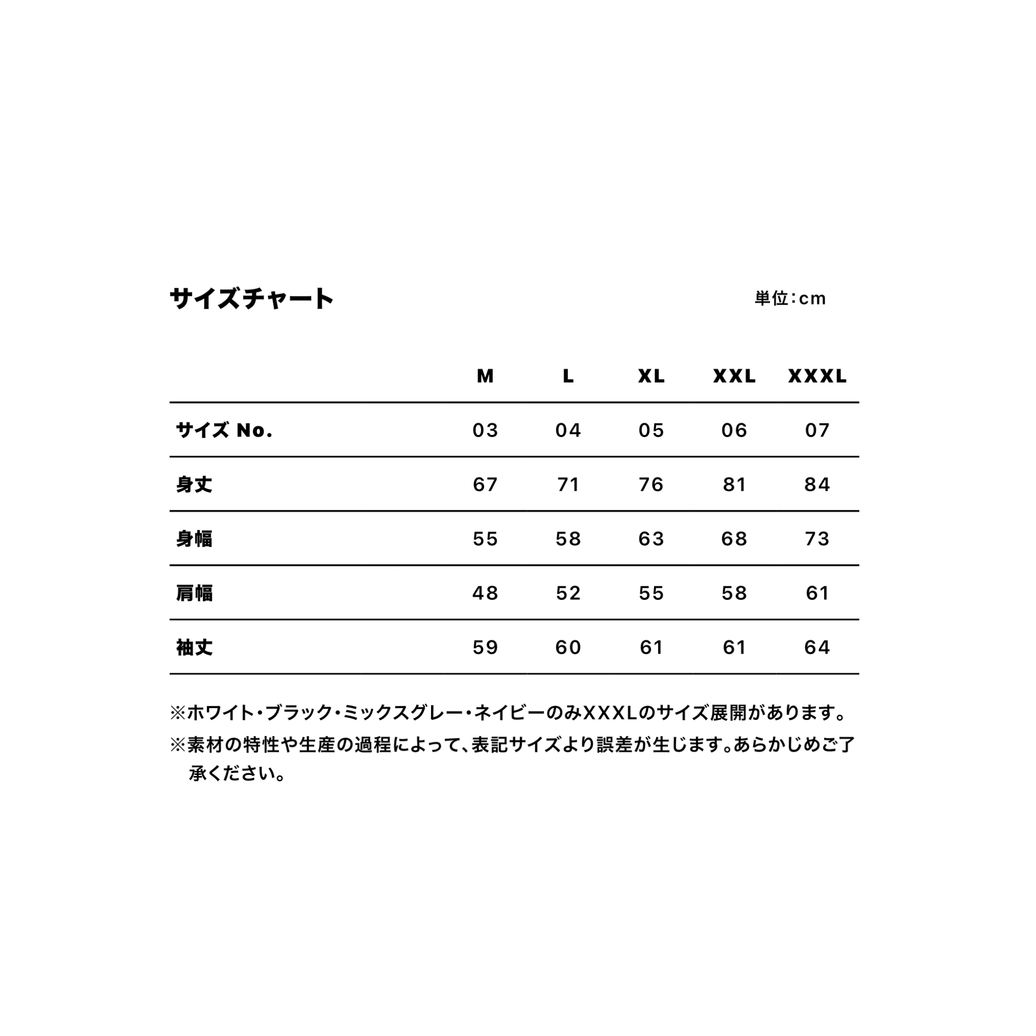 ・サイズ: M, L, XL, XXL, XXXL